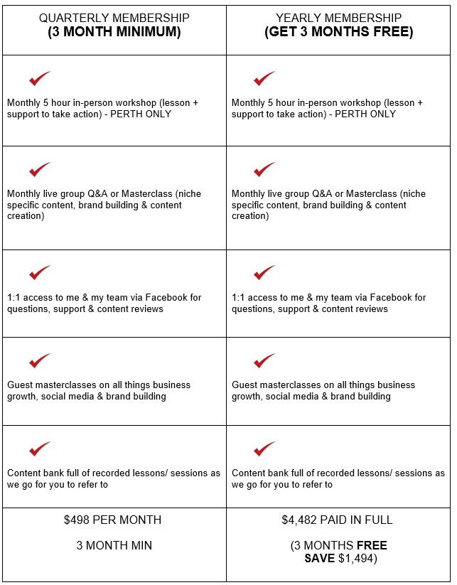 🌟MONTHLY IN-PERSON SOCIAL MEDIA, CONTENT CREATION & BRAND BUILDING SESSIONS VALUED AT $7200 (FOR THE 3 MONTHS)