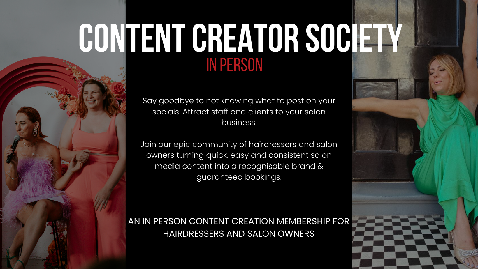 AN IN-PERSON CONTENT CREATION MEMBERSHIP FOR HAIRDRESSERS & SALON OWNERS INCLUDING: